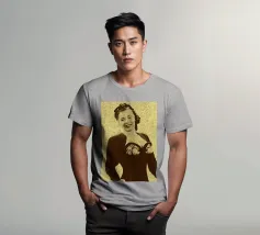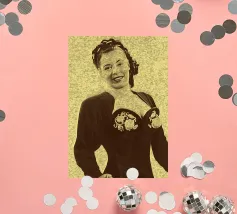 Billie posa con radiosa sicurezza e stile, un'icona della moda e dell'anima in armonia.