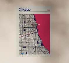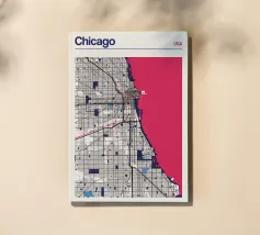 Un'opera d'arte iconica che cattura l'esclusivo reticolo stradale di Chicago e la suggestiva costa del lago Michigan. L'accurata rappresentazione combina strutture urbane con linee minimaliste e colori vivaci per creare un design senza tempo.