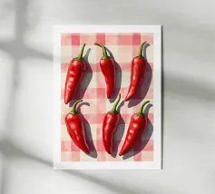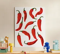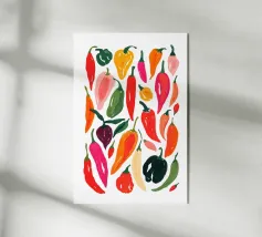Questo disegno acquerellato con peperoncino è un'opera d'arte di grande impatto visivo. Il disegno presenta peperoncini dettagliati in tonalità vivaci, creando un senso di calore. La ripetizione aggiunge unità al pezzo, rendendolo perfetto per chiunque ami l'arte dell'acquerello.