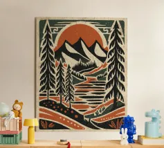 Sperimentate l'essenza della tranquillità con il nostro design Chillin Time, dove il sole bacia dolcemente le serene cime delle montagne mentre le foreste lussureggianti abbracciano il paesaggio. Illustrazione retrò con rumore e tipografia.