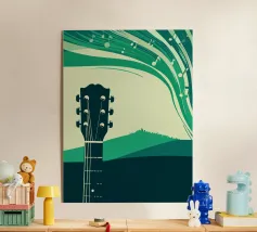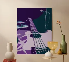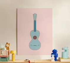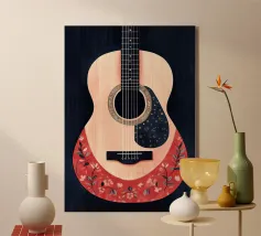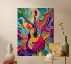 Design moderno e colorato della chitarra: Design unico e accattivante della chitarra con un tocco di colori moderni e audaci.