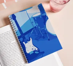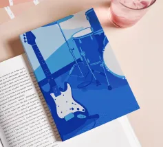 Elegante e affascinante. Un set di chitarra e batteria con una seducente finitura blu. Un design elegante che valorizzerà l'ambiente e offrirà una piacevole esperienza musicale.