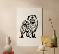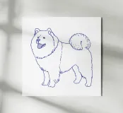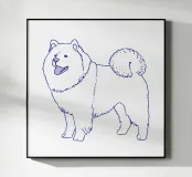 Disegno a linee blu di un chow chow. Il motivo è adatto solo su sfondi chiari.