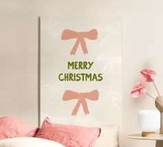 Disegno di un pino verde con neve e un fiocco rosso con citazione di Natale