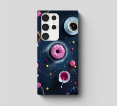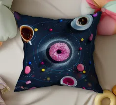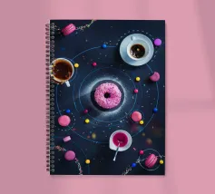 ciambella ciambella rosa zuccherini macarons tazze da caffè tazza da tè espresso piattino glassa rosa zucchero caramelle colorate zucchero in polvere sfondo blu linee circolari cucchiai caramelle rosa piovigginare modello orbitale dessert tavola imbandita