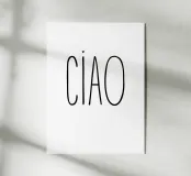 Ciao, ciao in Italia. Tipografia in nero e bianco (trasparente). È possibile cambiare il colore dello sfondo. Poster tipografico minimalista.