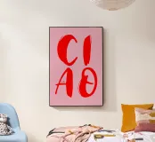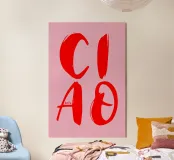 Scoprite il nostro design allegro e affascinante "CIAO Bella". Questo vivace disegno presenta la parola italiana "CIAO" in grandi e audaci lettere rosse su uno sfondo rosa. Le lettere hanno un effetto pennellata che conferisce al disegno un aspetto artistico e dinamico. Sotto la lettera "A" c'è la scritta "bella" in un carattere più piccolo, che conferisce un ulteriore fascino e un messaggio affettuoso.