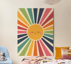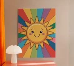 Luminoso, allegro e pieno di energia: questo sole sorridente porta immediatamente il buon umore in qualsiasi stanza. Con i suoi raggi colorati e il suo volto amichevole, è il motivo perfetto per le stanze dei bambini, le sale giochi o per chiunque voglia godersi un po' di sole ogni giorno. Un design che irradia ottimismo, gioia e calore, ideale per i piccoli solari e i grandi sognatori.