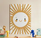 Questo affascinante sole sorridente porta calore, gioia e una sensazione di sicurezza in ogni stanza. Ideale per le camere dei bambini, come regalo di nascita o come dichiarazione positiva per la vostra casa. Lo stile minimalista in giallo solare ha un aspetto moderno, allegro e affettuoso allo stesso tempo - un vero punto di forza sulla vostra parete!
