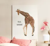 Ravvivate le vostre pareti con questa allegra opera d'arte di giraffa! Caratterizzata dalla dolce frase "Hello, Sunshine!", questa illustrazione giocosa è perfetta per le camere dei bambini, le camerette o per chiunque ami gli animali del safari. Un'opera d'arte da parete divertente ed edificante che dona calore e fascino a qualsiasi spazio.