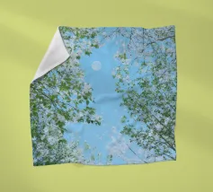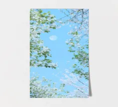 Circondata da una coltre di stelle, brilla dolcemente, a volte velata da nuvole vaganti. Che sia piena e luminosa o una delicata falce, la luna porta un senso di calma e meraviglia, illuminando l'oscurità con la sua luce serena. Il cielo che la circonda è profondo e vasto, dipinto con sfumature di blu notte e disseminato di luci scintillanti che sembrano sussurrare antichi segreti".