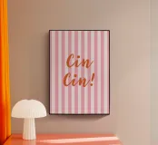 Elegante design a tema brindisi con la frase italiana "Cin Cin!". - un'elegante celebrazione dell'amicizia, del vino e dei bei momenti.