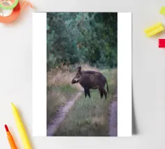Un enorme cinghiale mi ha attraversato la strada nella foresta.