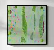 Tecnica mista con pittura acrilica, inchiostro ad alcool e manifesti di spettacoli circensi