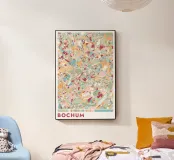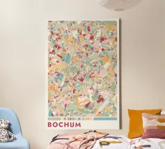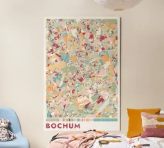 La città di Bochum in una splendida mappa a colori. La città di Bochum con la mappa dettagliata della città divisa in diversi colori si adatta come murale a casa o in ufficio.