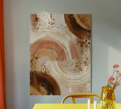 Toni caldi di beige, marrone e terracotta stratificati con una morbida texture pittorica. Un pezzo senza tempo per gli amanti dell'arredamento moderno e neutro.