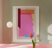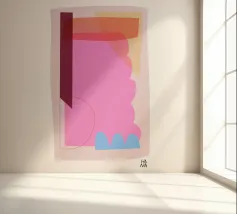 This painting merges flowing forms with bold colors into an abstract composition that expresses both calmness and movement.