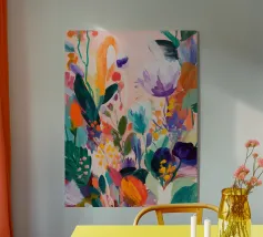 A richly layered abstract painting where soft colors and expressive brushstrokes come together in a balanced composition. This artwork feels lively yet calm, adding depth and warmth to modern interiors.