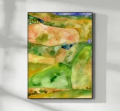 Golden Hills è un paesaggio luminoso ad acquerello ispirato alle valli illuminate dal sole e al ritmo dolce delle colline. Le morbide transizioni di verde, ocra e pesca evocano il calore, la calma e la tranquilla armonia della natura. Questo dipinto conferisce un senso di spazio e serenità, una scelta perfetta per gli interni che celebrano la bellezza naturale e le palette di colori pacifici.