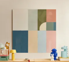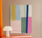 Equilibrio armonico di forma e colore. Quest'opera d'arte combina colori vivaci ed elementi geometrici per creare un insieme armonioso che irradia eleganza moderna e diversità creativa.