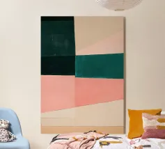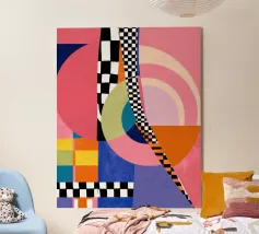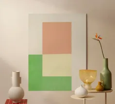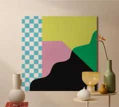 Quest'opera ispira con colori vivaci e forme chiare che creano una composizione armoniosa e astratta. Perfetto per aggiungere un accento creativo a qualsiasi ambiente o prodotto.