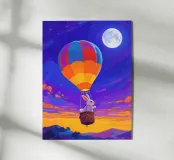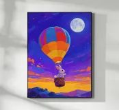 Coniglio che cavalca una mongolfiera con pittura fauvismo stile arte