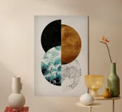 "Copper 02" è un gioco armonioso di forme, texture e contrasti - una composizione moderna di rame, marmo, acqua e profondità. Il design di Froilein Juno combina la chiarezza geometrica con il movimento naturale: il calore metallico incontra la calma fredda. Un'opera d'arte per chi ama il design senza tempo, l'estetica e l'equilibrio, perfetta per interni moderni, stili di vita scandinavi o pareti di gallerie minimaliste.