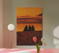Che si tratti di camminare lungo la costa, di sedersi insieme sotto un cielo pastello o semplicemente di condividere il silenzio delle onde, la coppia incarna la connessione, la calma e la presenza condivisa. Il mare rispecchia il loro legame, profondo, fluido e senza tempo. Quest'opera d'arte cattura un momento in cui l'amore e la natura fluiscono insieme in un'armonia pacifica.