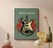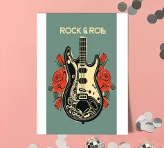 Questo vibrante poster combina lo spirito del rock and roll con l'estro artistico, con una dettagliata chitarra elettrica circondata da audaci rose rosse. Un perfetto omaggio alla musica e allo stile, che aggiunge energia e fascino a qualsiasi spazio.