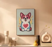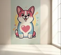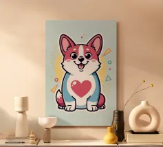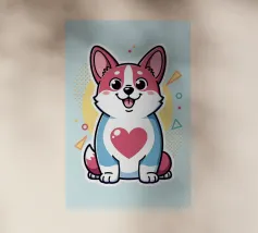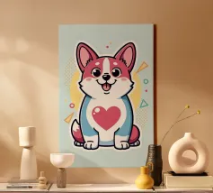 Questo corgi allegro e vivace ama voi amanti degli animali. Con i suoi delicati colori pastello, porta con sé il cuore in primo piano.