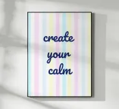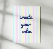 "Crea la tua calma" centrata su uno sfondo a strisce verticali in morbidi colori pastello. Semplice design clipart senza ombre, minimalista e chiaro - ideale per vibrazioni calme ed equilibrate con un look moderno.