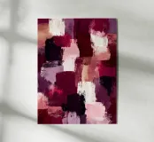 Strati pittorici di prugna, crema e rosa in pennellate espressive. Un bellissimo astratto che sembra audace ma equilibrato.