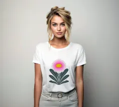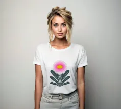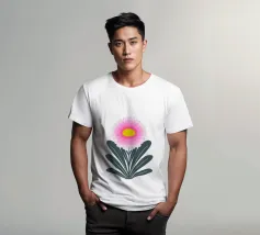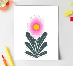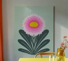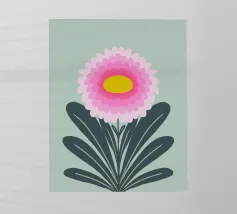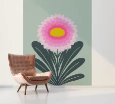 Ravvivate il vostro spazio con questa vibrante illustrazione di crisantemo, che mostra strati di petali smerlati rosa che si irradiano da un allegro centro giallo. Incorniciato da foglie verde scuro, il fiore si staglia su un morbido sfondo verde pastello, creando un design armonioso ed edificante. Quest'opera d'arte emana un fascino botanico moderno e senza tempo, perfetto per gli amanti della natura e dei fiori.