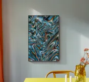 Dieses Poster erinnert an flüssiges Metall im Farbspiel aus Blau, Orange, Silber und Schwarz – voller Dynamik, Glanz und Tiefe. Die abstrakte Komposition wirkt wie ein bewegter Spiegel und zieht den Blick in ein Strömungsmuster aus Licht und Farbe. Ideal für moderne Räume, futuristische Interiors oder als Eyecatcher in kreativen Umgebungen.