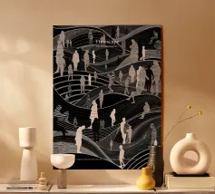 Questa opera d'arte dettagliata mostra una varietà di persone in diverse attività, amorevolmente raffigurate come delicati schizzi in bianco e nero. La composizione minimalista cattura la vita quotidiana e la diversità dell'interazione umana e si integra armoniosamente in qualsiasi ambiente. Perfetto per gli amanti dell'arte che apprezzano le opere sottili ma espressive.