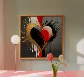 Cuore blob colorato in nero, rosso, oro_2 plexiglass