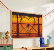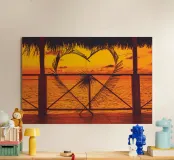 Fronde di palma a forma di cuore su un dorato tramonto caraibico cubano