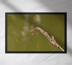 Due libellule formano un bel cuore perfetto. Sembrano ammiccare l'una all'altra sopra l'acqua. La loro danza silenziosa è piena di dolcezza, come un momento rubato al tempo. Un duetto leggero e romantico!