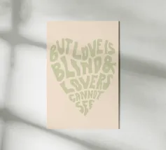 Una stampa d'arte elegante per tutti i romantici! Il design minimalista di questo cuore con la citazione poetica "But love is blind & lovers cannot see" combina un'estetica semplice con un significato profondo. La giocosa tipografia disegnata a mano aggiunge un tocco artistico all'immagine e la rende un pezzo senza tempo. Perfetto per salotti moderni, camere da letto o come regalo per persone speciali. La combinazione di colori caldi, in un tenue rosé, crea un'atmosfera delicata e armoniosa ed è ideale per gli stili d'interni scandinavi o minimalisti.