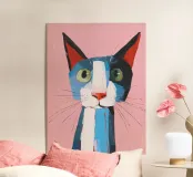 Mit großen Augen und gespitzten Ohren blickt sie direkt in dein Herz: „Curious Blue Cat“ ist eine Hommage an die charmante Eigenwilligkeit von Katzen. Die klaren Formen und kontrastreichen Farben verbinden geometrische Abstraktion mit verspielter Ausdruckskraft – ein modernes Porträt, das Lebensfreude und Charakter ausstrahlt.