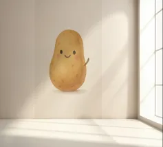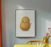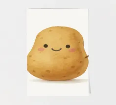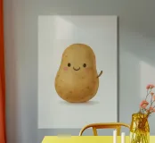Un'illustrazione tenera e sciocca di una patata con grandi occhi e un piccolo sorriso. Questo adorabile vegetale porta umorismo e fascino nelle cucine, nelle camerette o nei dormitori. Perfetto per chi crede che il comfort food debba essere anche carino. Un pezzo dai toni caldi per angoli accoglienti.