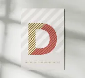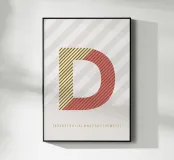 D-TYPEFACE in un design senza tempo - poster tipografico con colori vivaci e un gioco di forme sullo sfondo.