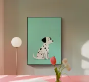 Una dolce illustrazione di un cucciolo di dalmata pensata per rallegrare qualsiasi cameretta o stanza dei bambini.