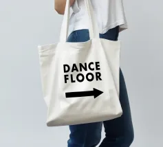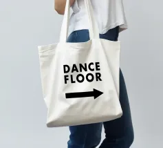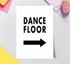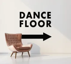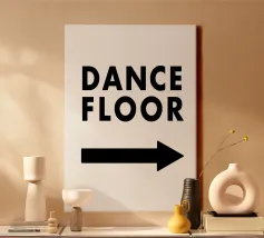 Una scena dinamica ed elettrizzante di una pista da ballo illuminata al neon, con luci colorate che lampeggiano in sincronia con il ritmo. La frase "Dance Floor" è riportata in una tipografia che cattura l'energia e l'eccitazione di una notte piena di musica e movimento.