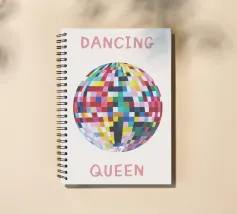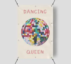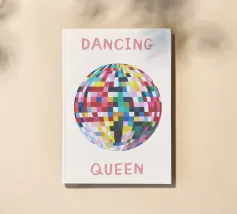 Un'allegra palla da discoteca in morbide tessere pastello abbinate a una tipografia giocosa di ispirazione rétro. Questo design cattura il movimento spensierato, l'energia pop vintage e un'atmosfera dolcemente moderna.