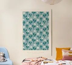 Questa opera d'arte digitale con motivo a dente di leone in blu è un pezzo di grande impatto visivo. L'opera presenta un motivo ripetuto di denti di leone reso in stile digitale. L'uso del blu crea un senso di armonia ed equilibrio in tutta l'opera.