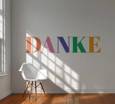 Un motivo tipografico giocoso ed elegante che presenta la parola "GRAZIE" in cinque diversi colori e stili di carattere: arancione, rosa, blu scuro, verde e giallo - ogni lettera è un carattere a sé stante. Il mix di caratteri serif e sans-serif conferisce al disegno tensione ritmica e varietà visiva. La composizione sembra un ringraziamento grafico, vivace, amichevole e con un tocco retrò.