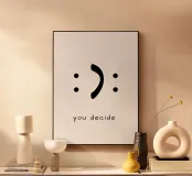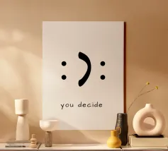 Questa stampa fine art ispirazionale presenta un disegno creativo di uno smiley che può essere visto da due lati, abbinato alle parole motivazionali "You Decide". Perfetta come regalo per gli ottimisti, come decorazione da parete in ufficio o a casa - un promemoria quotidiano per un atteggiamento positivo.