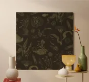 Forme morbide e ondulate si muovono su una ricca tela color oliva, introducendo profondità e intimità nel vostro spazio. Questo motivo conferisce un accento sottile e drammatico che si armonizza perfettamente con le palette di design contemporanee e tradizionali.