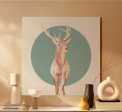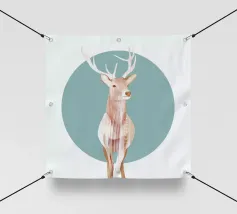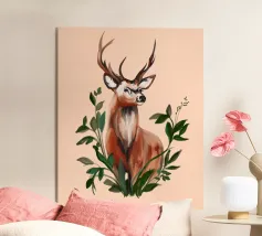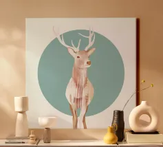 Illustrazione della stagione invernale di un cervo con le corna, un cervo reale, uno spirito natalizio, una forza della natura.